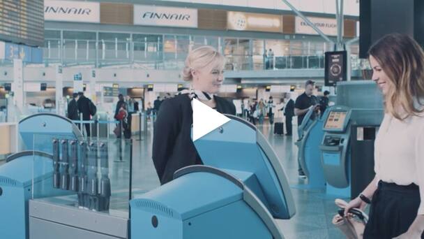 观看视频了解如何使用自助服务登机亭为芬兰航空航班办理登机手续。