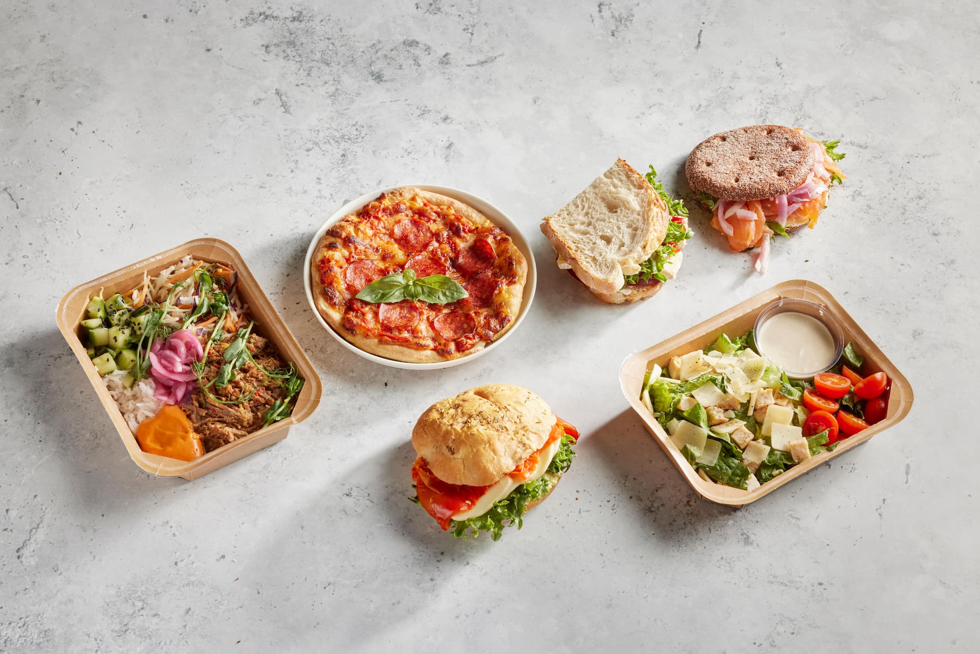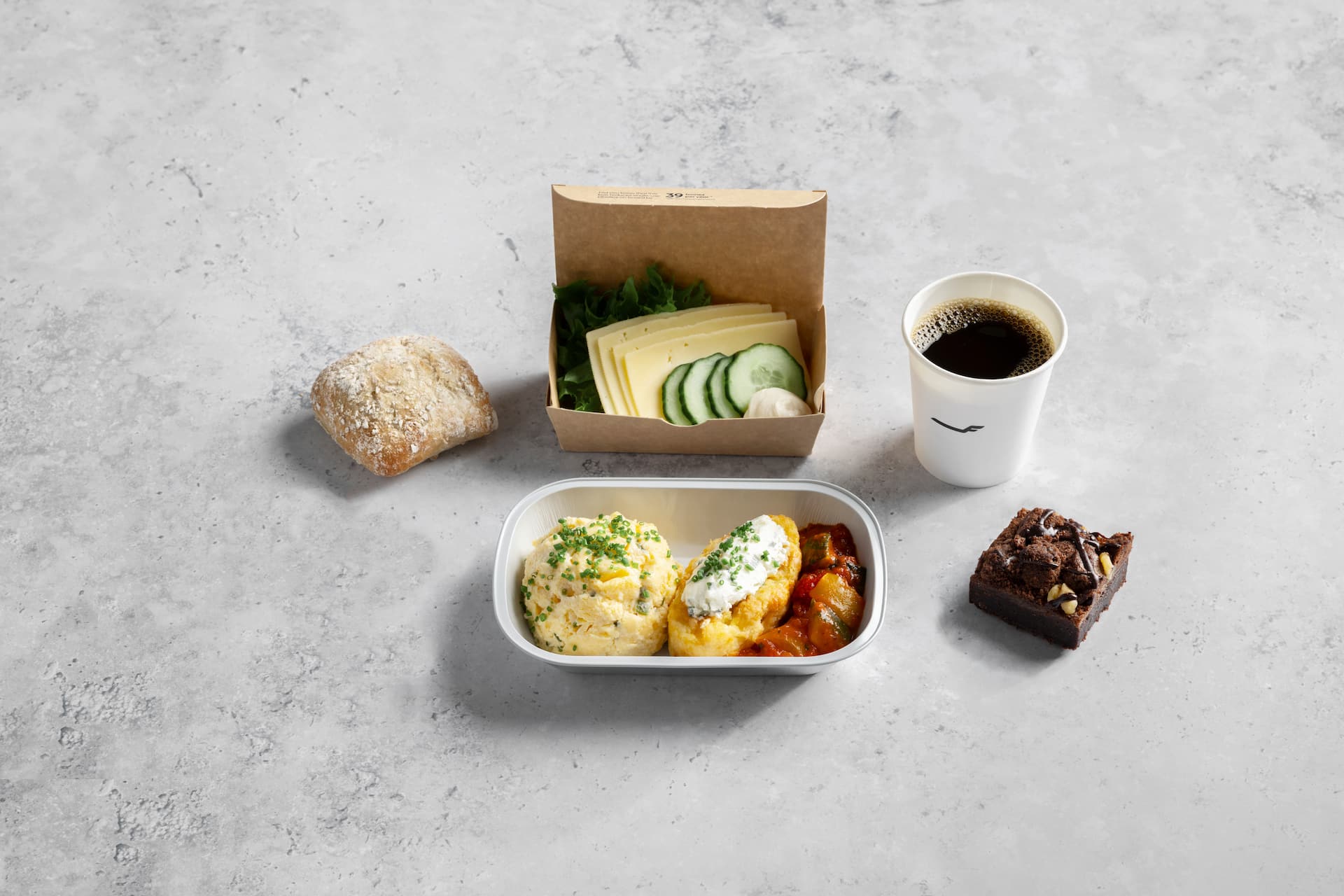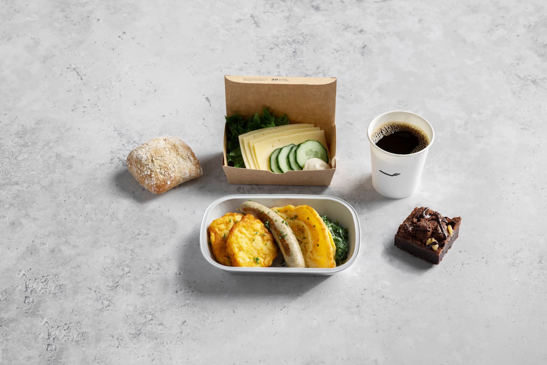 Bread [wheat flour, water, whole wheat flour, salt, yeast, extra virgin olive oil, malt flour (wheat), may contain soy and milk], beef ham 25% [beef 95% (EU/Germany), water, salt, stabilizers E451, E450, dextrose, antioxidant E316, preservative E250], lactose-free mayonnaise (rapeseed oil, water, sugar, dried egg yolk, salt, acidity regulators E260, E330, preservative E202, stabilizers E415, E412, mustard flavouring, antioxidant E385), cabbage, mayonnaise sauce [rapeseed oil, sugar syrup, water, vinegar, egg yolk, mustard (mustard seeds, turmeric extract), rice starch, salt, sugar, preservatives E202, E211, thickener E415], frillice salad, water, cucumber salad (cucumber 66%, water, sugar, paprika, onion, salt, acidity regulator E260, mustard seeds, thickeners E410, E412, E406, flavourings, preservative E202, antioxidant E300), marinated vegetables (carrot, cucumber, sugar, water, cauliflower, spirit vinegar, onion, salt, preservative E202, white pepper extract, clove), leek, carrot, modified starch, sugar, stabilizer E415, preservative E211, antioxidant E300.