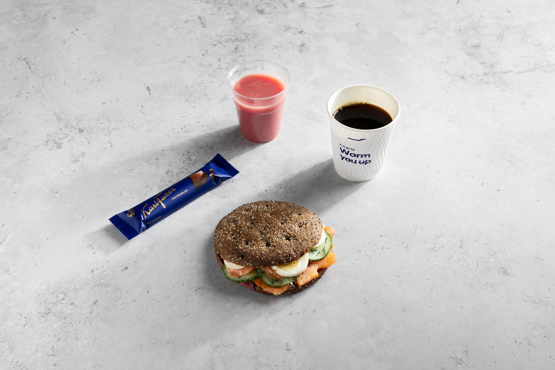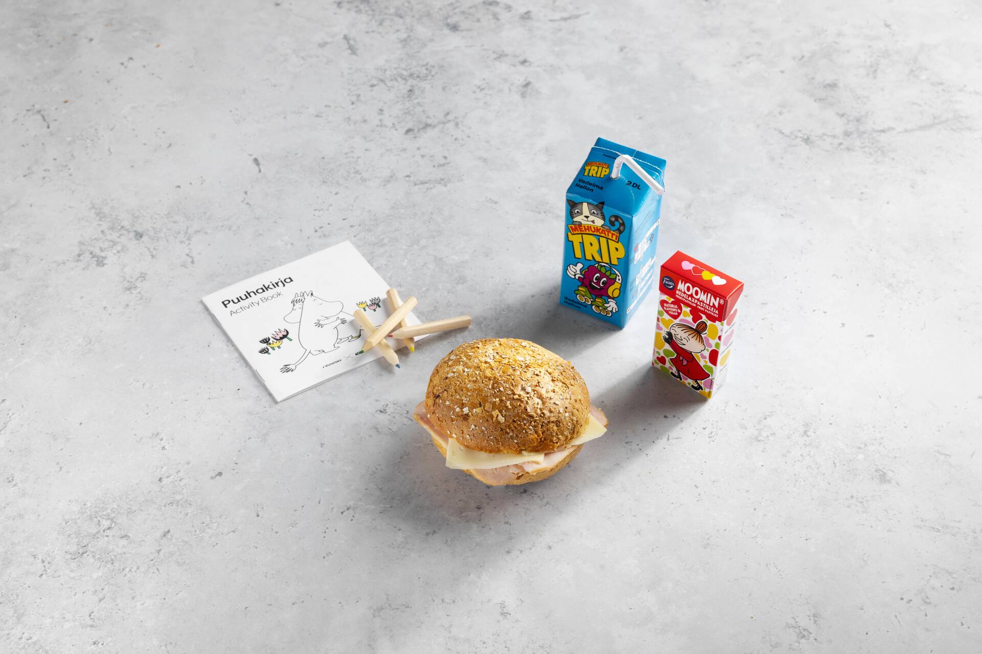 Brot [Weizenmehl, Wasser, Vollkornweizenmehl, Salz, Hefe, nativesOlivenöl, Malzmehl (Weizen), kann Soja und Milch enthalten], Rinderschinken 25 % [Rindfleisch 95 % (EU/Deutschland), Wasser, Salz, Stabilisatoren E451, E450, Dextrose, Antioxidationsmittel E316, Konservierungsmittel E250], laktosefreie Mayonnaise (Rapsöl, Wasser, Zucker, getrocknetes Eigelb, Salz, Säureregulatoren E260, E330, Konservierungsmittel E202, Stabilisatoren 415, E412, Senfaroma, Antioxidationsmittel E385), Kohl, Mayonnaisesauce [Rapsöl, Zuckersirup, Wasser, Essig, Eigelb, Senf (Senf körner, Kurkumaextrakt), Reisstärke, Salz, Zucker, Konservierungsmittel E202, E211, Verdickungsmittel E415], Frisée salat, Wasser, Gurkensalat (Gurke 66 %, Wasser, Zucker, Paprika, Zwiebel, Salz, Säureregulator E260, Senfkörner, Verdickungsmittel E410, E412, E406, Aromastoffe, Konservierungsmittel E202, Antioxidationsmittel E300), mariniertes Gemüse (Möhren, Gurken, Zucker, Wasser, Blumenkohl, Branntweinessig, Zwiebeln, Salz, Konservierungsmittel E202, weißer Pfefferextrakt, Nelken), Lauch, Möhren, modifizierte Stärke, Zucker, Stabilisator E415, Konservierungsmittel E211, Antioxidationsmittel E300.
